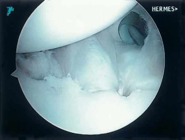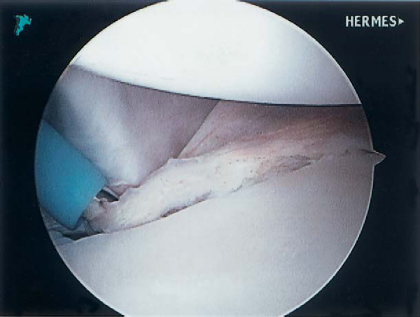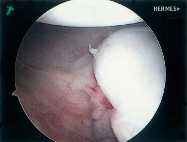 Preparation of the AIGHL is determined by the pathologic findings of the ligament at diagnostic arthroscopy. Visualization is through the posterior portal and instrumentation is through the anterior portals. If visualization is inadequate from the posterior portal, then visualization can be achieved from the anterior superior portal with instrumentation through the anterior inferior portal. The exposed labral edge of the Bankart lesion is débrided with a motorized shaver or bur to promote healing of the ligament to bone after repair.