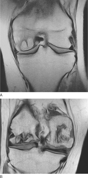 The Aglietti classification for spontaneous osteonecrosis (modified Koshino) and the Mont and Hungerford classification for atraumatic osteonecrosis (modified Ficat-Arlet) are described in Boxes 54-1 and 54-2 [1] [2].
