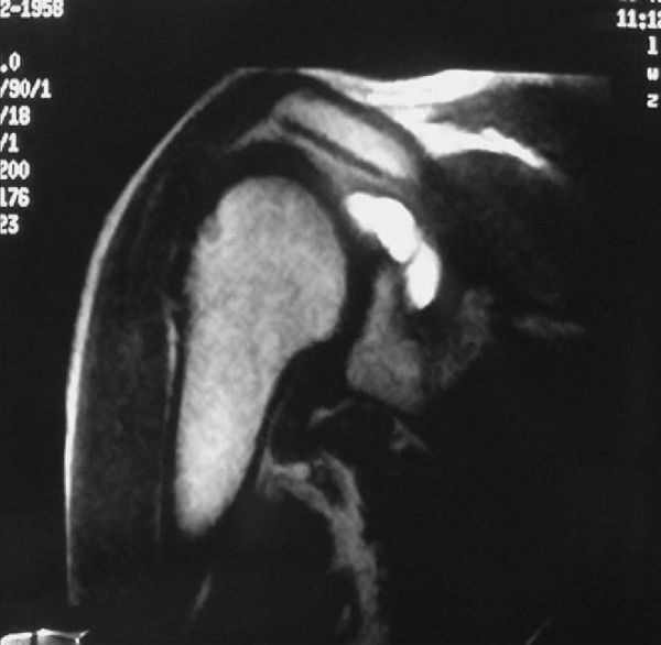In no other joint is there as much variability in normal anatomy as in the shoulder. Unusual conditions of the shoulder must be differentiated from normal variants. Although most pathologic processes are covered in other chapters, rare lesions such as pigmented villonodular synovitis, osteochondritis dissecans of the glenoid and humerus, traumatic chondral fracture, chondrolysis, synovial osteochondromatosis, ganglion and synovial cysts, blending or bifurcation of the biceps and tearing of the attachment of a Buford complex, reverse humeral avulsion of the glenohumeral ligament with infraspinatus tear, coracoid fracture with extension into the joint, and floating anterior capsule (combined Bankart lesion and humeral avulsion of the glenohumeral ligament) are not commonly encountered within the shoulder.