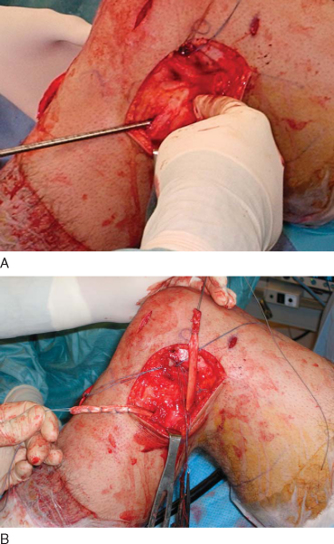 A hockey stick lateral incision is made to address injuries to the PLC. The iliotibial band is retracted anteriorly, and the biceps femoris muscle and tendon are retracted posteriorly. The common peroneal nerve is identified and protected throughout the procedure. Acute bone avulsion injuries of the LCL, popliteus, iliotibial band, or biceps tendon are generally repaired to bone with suture anchors. For irreparable, intrasubstance, or chronic PLC ruptures, reconstruction is recommended.