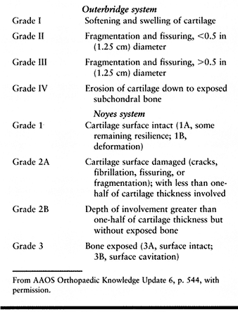 Loading of contained and uncontained articular defects. (Redrawn from Mandelbaum BR, Browne JE, Fu F, et al. Articular Cartilage Lesions of the Knee. Am J Sports Med 1998;26:858, with permission.) |
