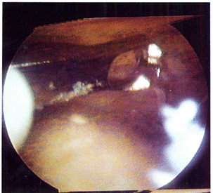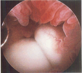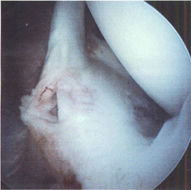 Figure 82.18. Arthroscopic view of arthrofibrosis in the anterior compartment. (This figure is printed in black and white as Figure 18 of Chapter 82.)