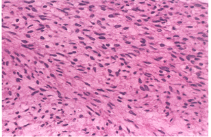 Well-differentiated fibrosarcoma with fascicles of spindle cells without pleomorphism. (This figure is printed in black and white as Figure 12 of Chapter 128.) |