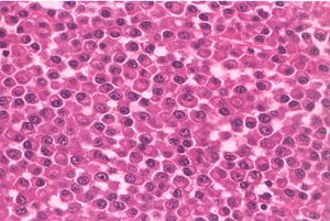 Figure 128.10. Small uniform nuclei with marked hyperchromasia typical of Ewing’s sarcoma. (This figure is printed in black and white as Figure 10 of Chapter 128.)