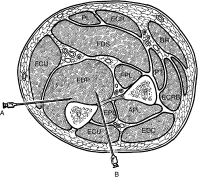 external pressure. The flexor forearm (Figure 15-2) and the interosseous (Figure 15-3) compartments have the greatest clinical significance, since development of a compartment