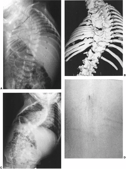 Many features are shared within the range of congenital spinal deformities (Fig. 19.2 A,B,C and Fig.19.3).