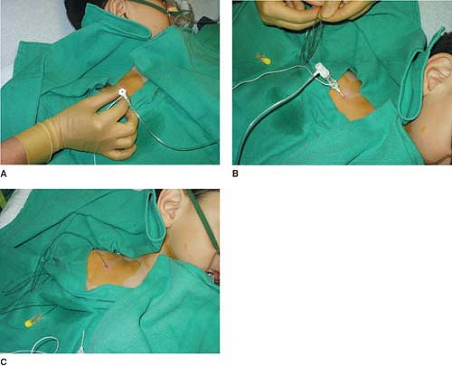 to the coracoid process in an appropriately anesthetized/sedated child.