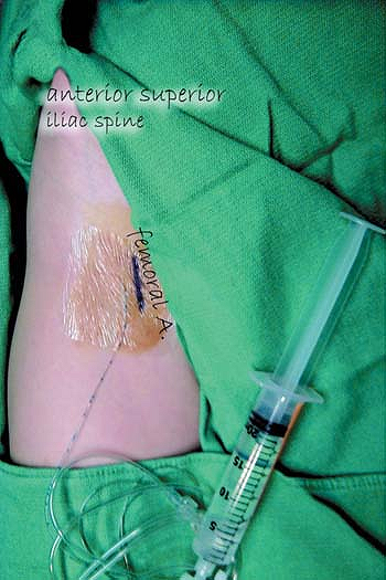 parallel to the femoral artery in an appropriately anesthetized/sedated