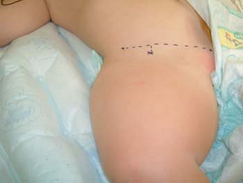 of this line is marked. The insertion point of the needle is 0.5 cm to