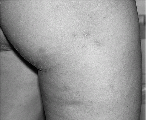 Herpes simplex : grouped vesicles on an erythematous base. (From Goodheart HP. Goodheart’s Photoguide of Common Skin Disorders, 2nd ed. Philadelphia: Lippincott Williams & Wilkins, 2003.) |