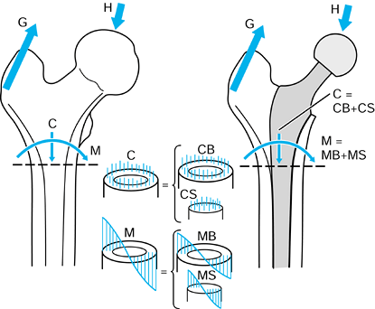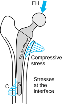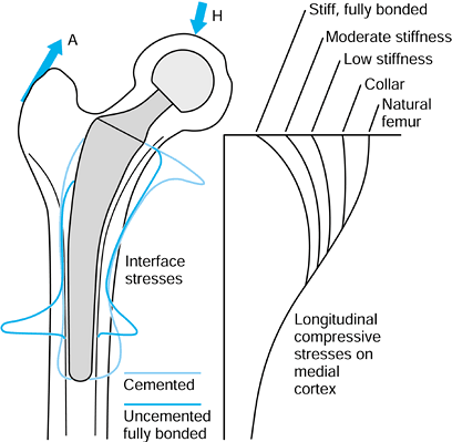with uncemented intramedullary stems, such as hemiarthroplasties and