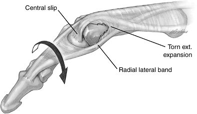Some patients can be treated successfully by immobilization if no palmar subluxation or extensor lag exists.