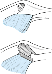 Figure 39.3. The proximal portion of the volar plate tapers along its lateral edges to form two check-rein ligaments. (From Bowers WH, ed. The Interphalangeal Joints. Edinburgh: Churchill Livingstone, 1987, with permission.)