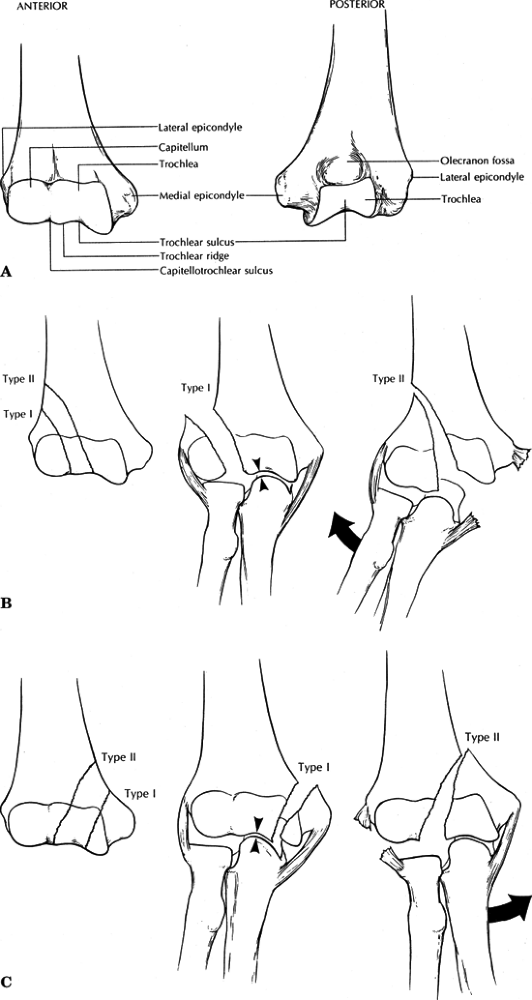 trochlea may be involved in this fracture. (B) Type II (Kocher-Lorenz)