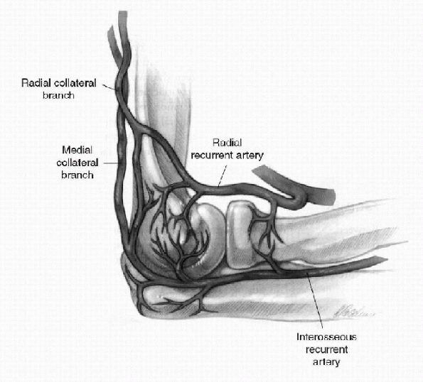 the triceps posteriorly. The articular surfaces, as well as the radial