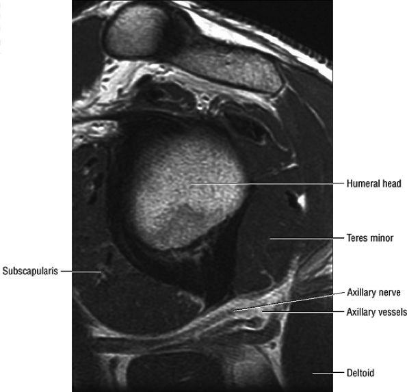 prolongation can be appreciated within 15 days of the injury.36 The following MR findings are helpful in evaluating axillary neuropathy:
