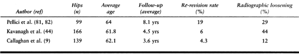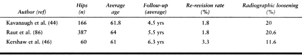 for cemented cups have had failure rates up to 30% at 10 years, and