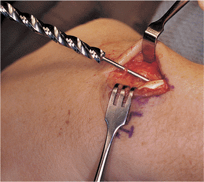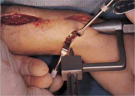 initiated in either bone. A 1.5-cm incision is made just lateral to