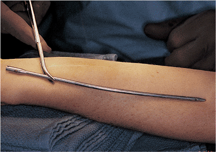 Figure 11.4. A 4-cm mini–open incision is used to reduce a completely displaced fracture of the radius.