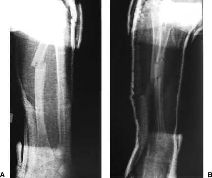 Figure 11.23. Postoperative AP (A) and lateral (B) radiographs after closed nailing.