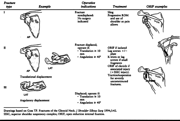 (© 1995 American Academy of Orthopaedic Surgeons. Reprinted from Goss TP. Scapular Fractures and Dislocations: Diagnosis and Treatment. J Am Acad Orthop Surg 1995;3:22, with permission.) |