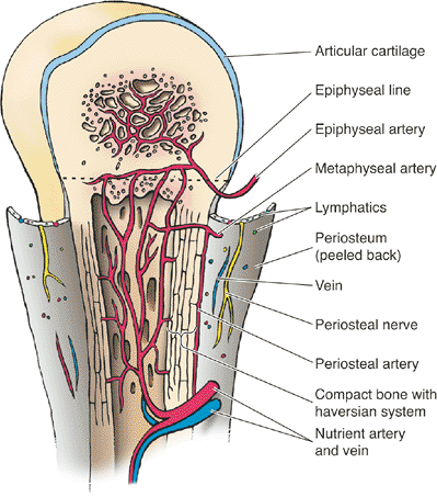 Nerves accompany vessels into bone both into the marrow space and into the Haversian and Volkmann canal systems.