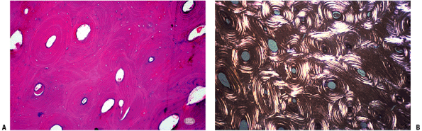 osteons). (B) Polarized light view of adult cortex showing secondary