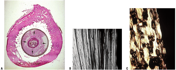 Subsequent generation of “secondary” (stress-directed haversian systems; see Figs. 14-19, 14-20, and 14-21) will eventually convert the normal periosteal ap-positional bone formation into adult remodeled cortex (Fig. 14-22).