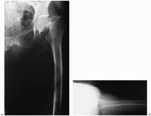 Anteroposterior and cross-table lateral view of the involved proximal femur (Fig. 22-4)