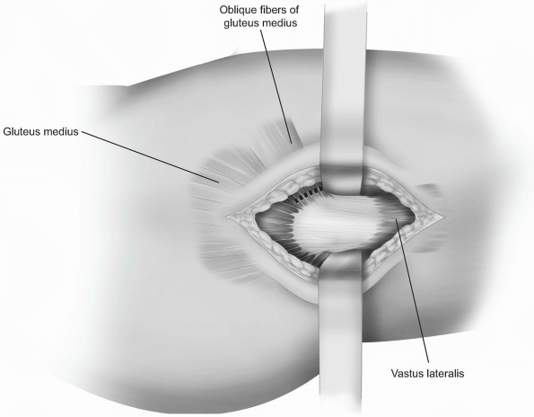 subperiosteally releasing the antero-oblique fibers of the gluteus