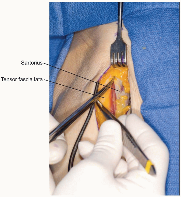 the gluteus is separated from the tensor fascia lata muscle at the site