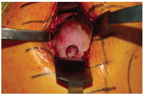 This osteotomy involves the posterior-lateral one third of the circumference of the femur (9,15, 16, 17) (see Fig. 7-51). This osteotomy is used for revision of the femoral component and involves the posterior-lateral one third.