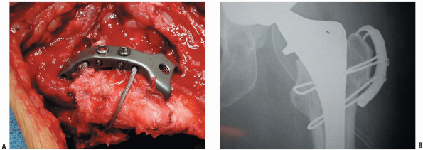 extended trochanteric osteotomy is from posterior to anterior (Fig. 7-68). The vastus lateralis muscle remains attached to the fragment. -