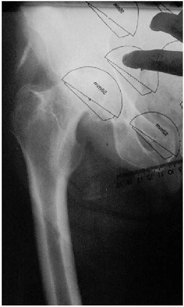 early osteonecrosis (no evidence of acetabular degeneration) and a