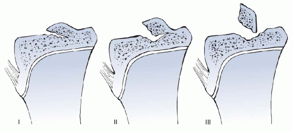 Failure of conservative therapy, loose fragments, and multiple fragments are indications for surgery.