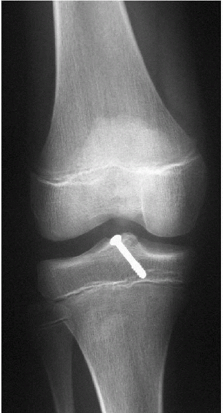 Healing progress is evaluated with plain radiographs and, if necessary, MRI.