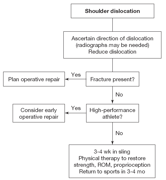 Postreduction management is periscapular stabilization exercises following 3 to 6 weeks of rest in a sling.