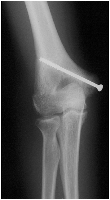 Figure 5-1 Little League shoulder is a widened lateral physis of the proximal humerus. Cause is thought to be from torsional stress.