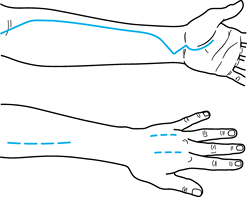eventual abscess formation. The venous drainage of the hand (palmar to