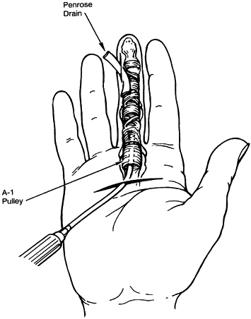 to promote drainage. Apply a plaster splint–reinforced long-arm bulky