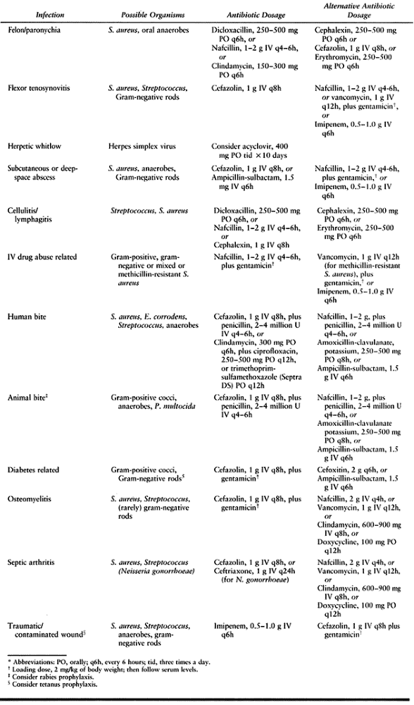 Table 73.1. Empiric Antibiotic Recommendations for Hand Infections*
