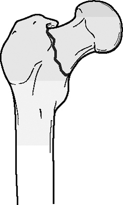 Figure 30.2. Basicervical neck fractures are located just proximal to or along the intertrochanteric line.