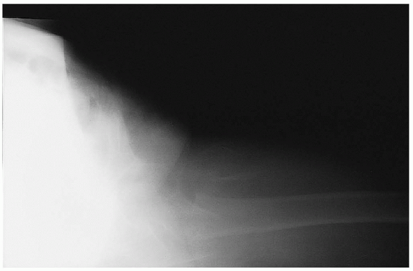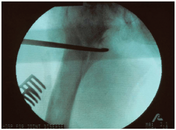 FIGURE 23-6. Standard radiographic view: cross-table lateral view of the involved proximal femur.