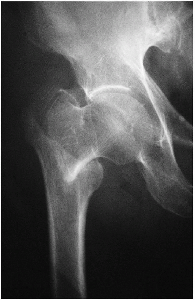 FIGURE 23-5. Standard radiographic view: anteroposterior view of the involved proximal femur.