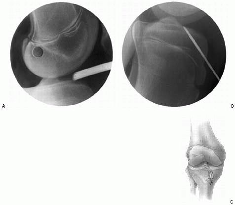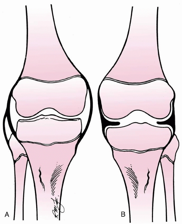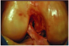 fixation of tibial eminence fractures, Kocher et al.177 found no associated chondral injuries and associated meniscal tear in only 3.8% (3/80) of patients (Fig. 24-1). Associated collateral ligament injury