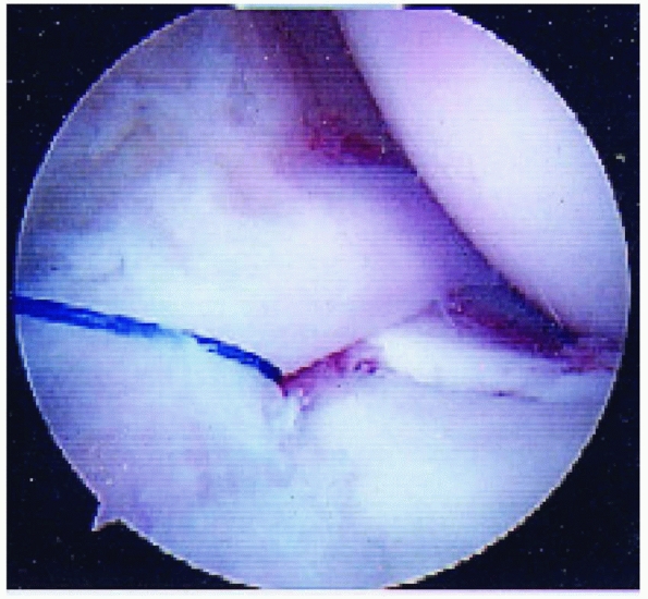 FIGURE 24-1 Longitudinal meniscus tear associated with tibial eminence fracture.