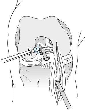 osteochondral injury, peripheral meniscus tear, or intraarticular
