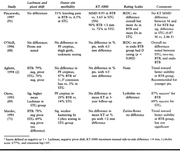 Ligament Reconstructions Using Patellar Tendon Autograft or Allograft. Arthroscopy 1996;12:414.