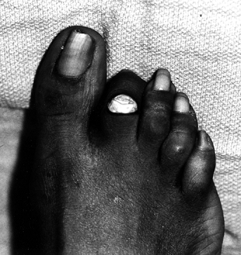 duration, it can become fixed. A disproportionately long lesser toe or