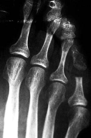 Figure 113.8. Radiograph of the toe after removal of the bony prominence. -